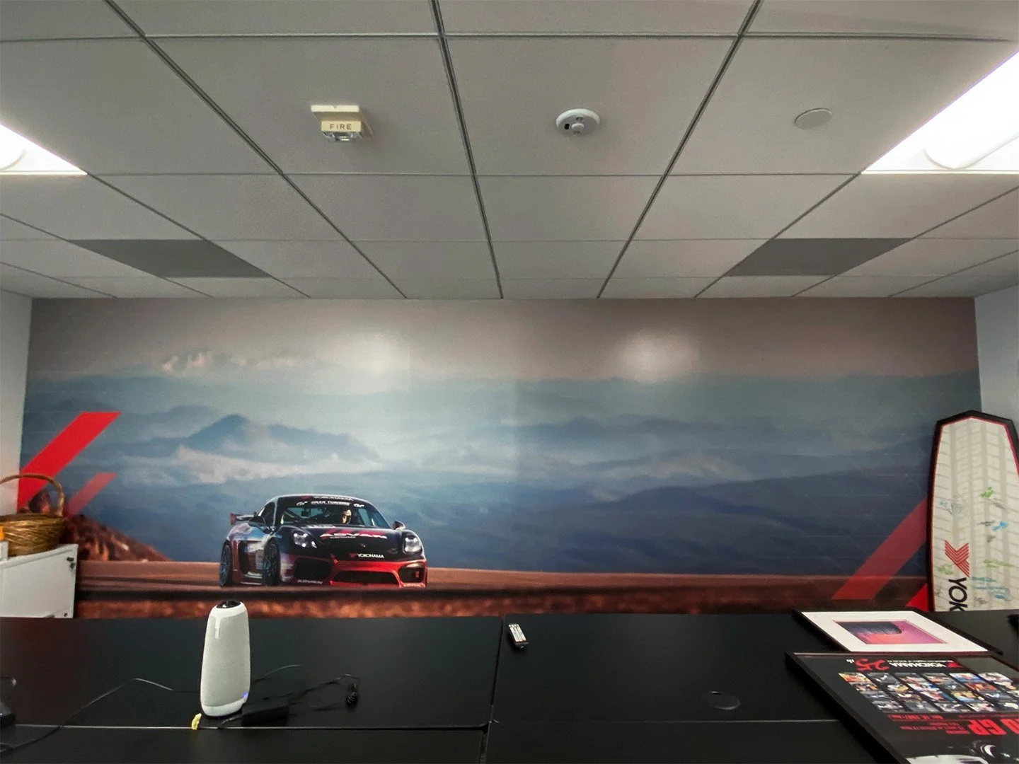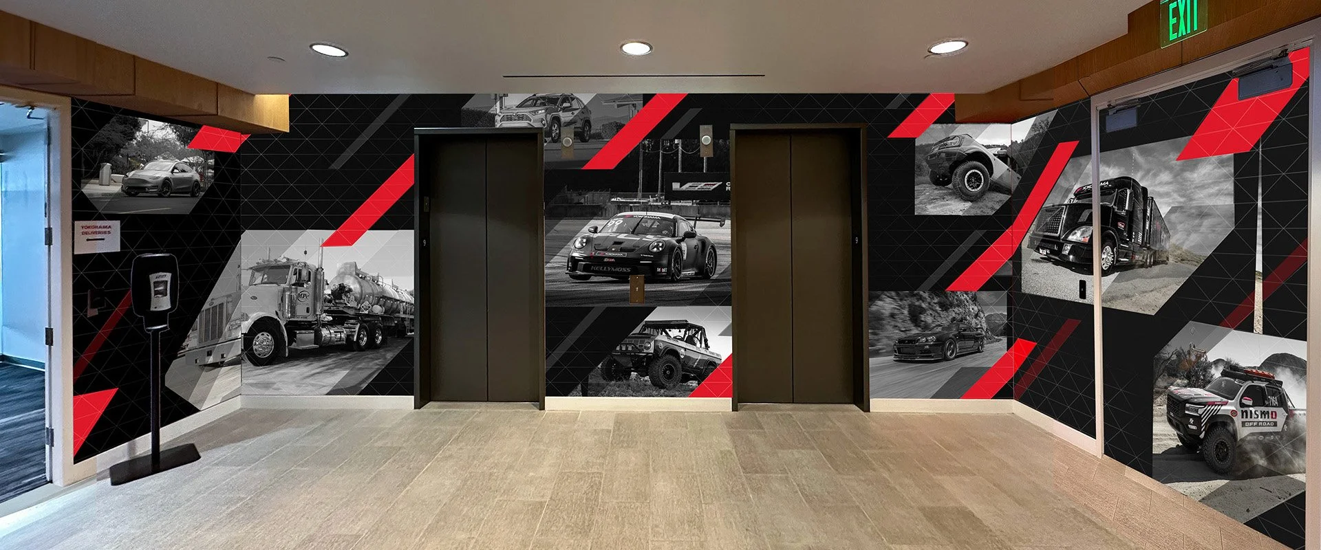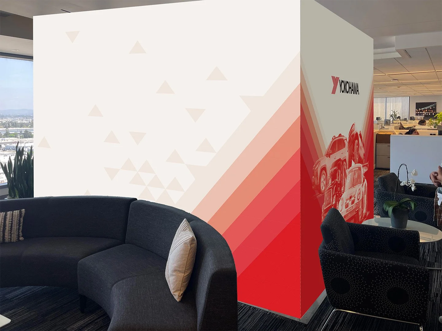 Provided with a couple of Yokohama brand logos and a library of vehicle photography, I was tasked to design office graphics that would express the spirit of the company to any visitor that walks in.